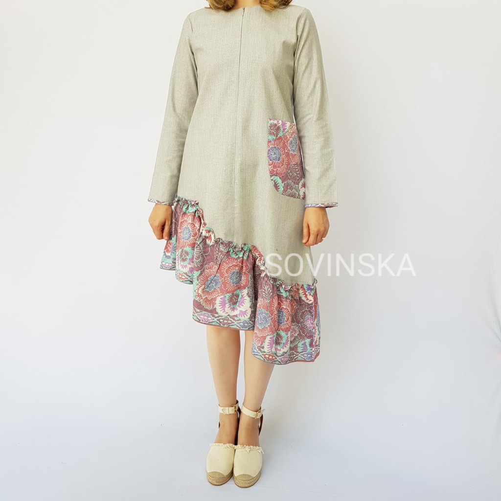 Blouse kombinasi Batik Dobby & Katun Linen