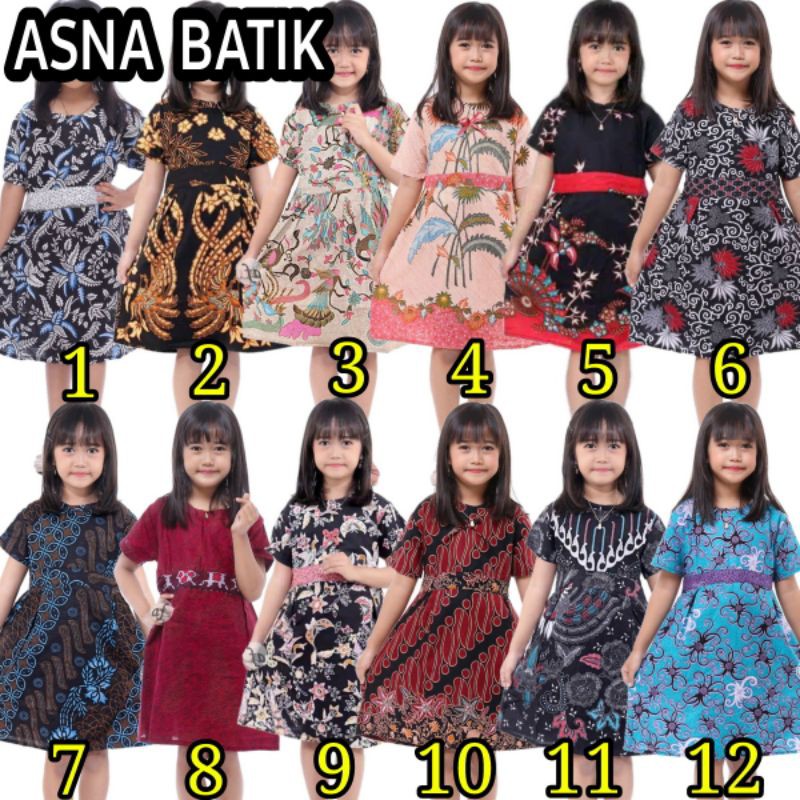 Jual Murah Fashion Bayi & di Kabupaten Lombok Timur Dress Batik Anak Usia 2 Sampai 10 Tahun - Motif Batik Bervariasi - Batik Anak Harga Ecer Bisa Cod dari Asna Batik Pekalongan Kota Pekalongan
